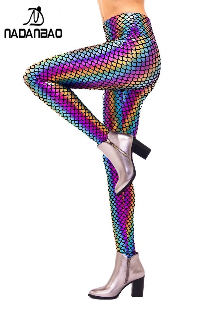 Nadanbao High Waisted Mermaid Leggings Rainbow Fish Scale Workout Pants Sexy Womens Halloween Cosplay Nightclub Costume