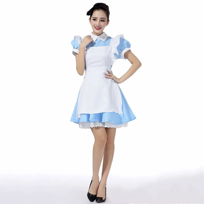 Alice In Wonderland Womens Cosplay Costume Lolita Dress Maid Apron Fantasia Carnival Halloween Outfit